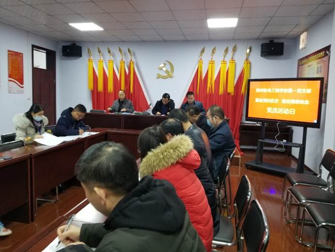 2021年1月12日,郑州机电工程学校党总支分支部召开了主题为 “重温党的历史 坚定理想信念”的党员活动日活动。